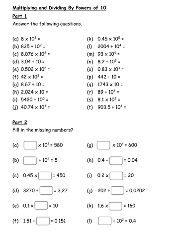 Multiplying by Powers of 10 Worksheets - Math Worksheets Land First few results of non-negative powers of ten are: 10 to the power zero = 1, 10 to the power 1 = 10, 10 to the power 2 = 100, 10 to the power 3 = 1,000, 10 to the power 4 = 10,000, 10 to the power 5 = 100,000. It can also go in the opposite direction when it comes to smaller value such as: 10 -2 = 0.01, 10 -3 = 0.001
